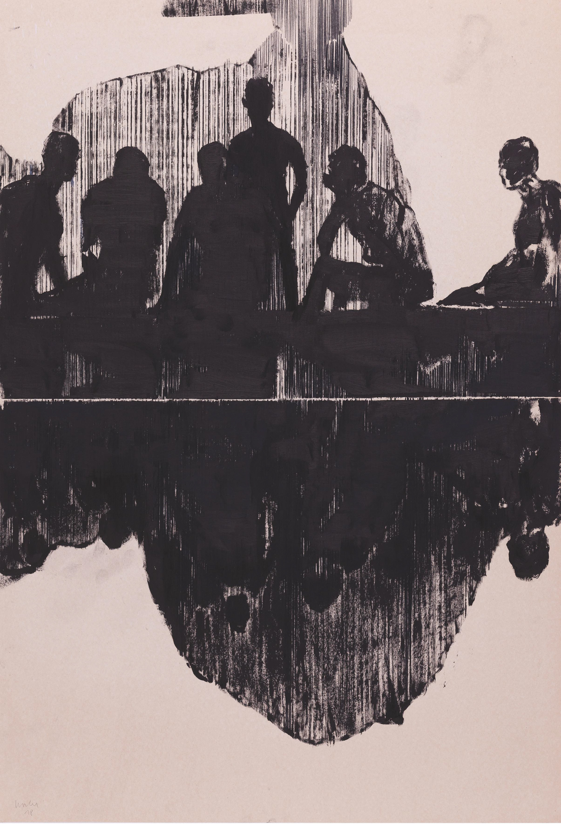 Der Schnitt, Holzschnitt, Öl auf Papier, 90 x 61 cm, 2018, Privatsammlung